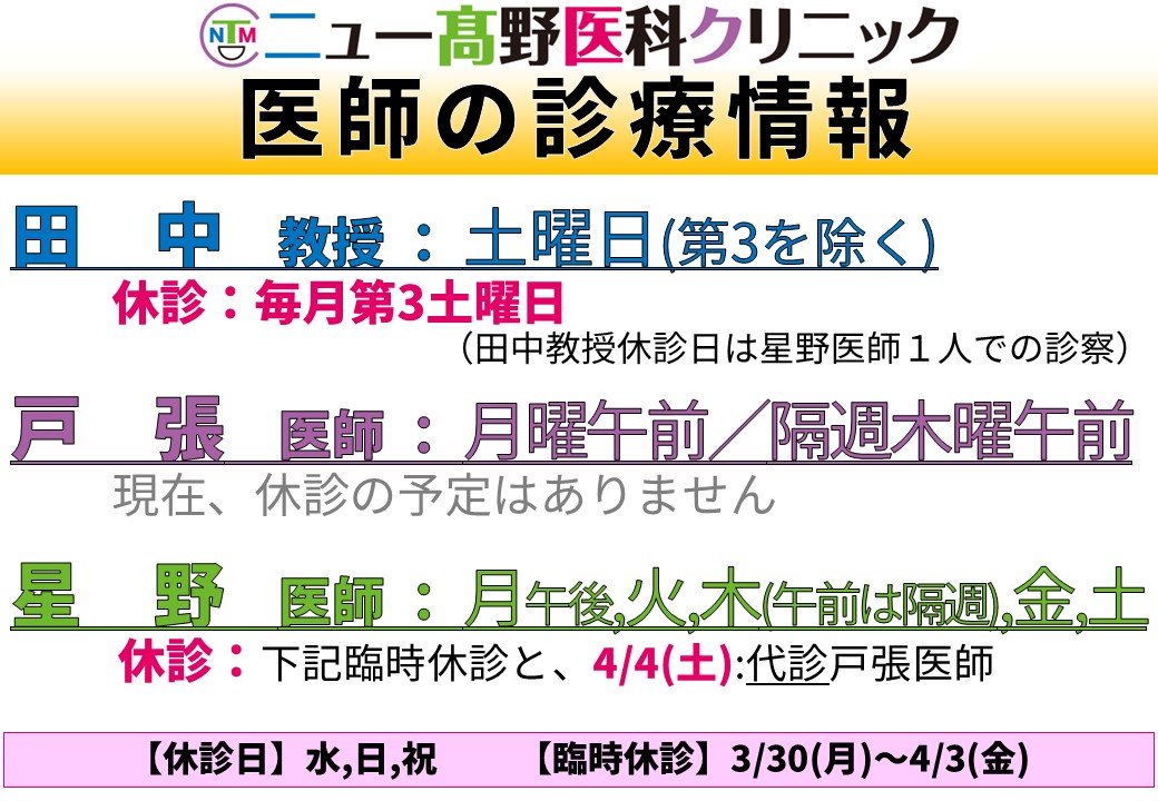 クリニックの臨時休診 3/30(月)~4/3(金)