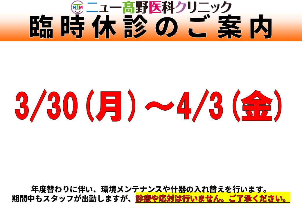 ⛔【臨時休診】3/30(月)~4/3(金)